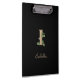 Elegant black clipboard features a gold botanical monogram in the centre.