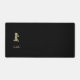 Elegant black desk mat features a gold botanical monogram in the centre.