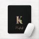 Elegant black mouse pad features a gold botanical monogram in the centre.