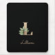 Elegant black mouse pad features a gold botanical monogram in the centre.