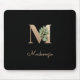 Elegant Botanical Monogram Letter M Mouse Pad