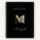 Elegant black notebook features a gold botanical monogram in the centre.