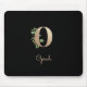 Elegant black mouse pad features a gold botanical monogram in the centre.