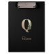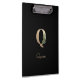 Elegant black clipboard features a gold botanical monogram in the centre.