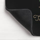 Elegant black gel mouse pad features a gold botanical monogram in the centre.
