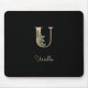 Elegant black mouse pad features a gold botanical monogram in the centre.