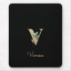 Elegant black mouse pad features a gold botanical monogram in the centre.