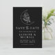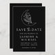 Elegant Botanical Moon and Stars Black and White Save The Date