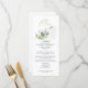 This wistful and elegant design features a green botanical olive branch, the symbol of peace, against a transparent watercolor backdrop. This wedding menu card in a simple gold calligraphy script is part of a set found in our Design Curve Studios Shop. A gorgeous Wedding theme for spring, summer, or fall. Easily customise with your personal information of choice.