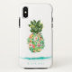 Elegant watercolor tropical island botanical pineapple with ocean ripple accent, personalised with name, iPhone case.