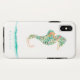 Elegant watercolor tropical island botanical seahorse with ocean ripple accent, personalised with name, iPhone case.