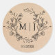 elegant botanical simple monogram wedding kraft classic round sticker