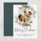Send warm holiday wishes with this Elegant Christmas Holiday Card! Featuring a custom family photo and beautifully designed watercolor pine tree branches, it blends modern elegance with a touch of botanical charm. Personalise it with your own message for a festive, heartfelt touch. Perfect for spreading Christmas vibes to loved ones near and far, this customisable card captures the spirit of the season with greenery and floral details.
