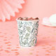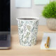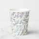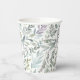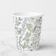 An elegant paper cup featuring a botanical watercolor in soft teals and greens.