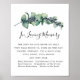 A wedding memorial sign that can be placed on a table display. It features a sage green eucalyptus sprig navy blue privet berries, with , a memorial sentiment and then a list of those to be remembered.This memorial sign is part of the Vibrant Eucalyptus collection. It contains many wedding sign templates that you can use to create a unique and personal wedding ceremony and reception. You should see a link on this page. If you don't see the link or you need help with an item, please contact me.