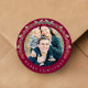 Elegant Botanical Wreath Photo Christmas Classic Round Sticker.