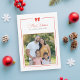 This elegant holiday card is perfect to send Merry Christmas wishes to family and friends. The minimalistic design features a red bow at the top and a red border. This card is modern, clean and places the central focus on the family photo.