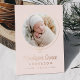 Introducing our Elegant Blush and Rose Gold Foil Bow Photo Birth Announcement, a stunning way to celebrate your little one’s arrival. The baby’s photo is beautifully encircled by a rose gold foil ribbon tied in a bow on a light blush pink background. Your baby's first and middle name appear in elegant calligraphy, with the last name and birth stats below. The back of the announcement offers space for an extra photo and a personal message. This luxurious, customisable keepsake is perfect for sharing your joy with family and friends!