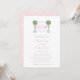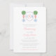 This classic Baptism or Christening invitation design features a simple monogram crest flanked on either side by a handpainted topiary ball in a ginger jar planter adorned with floppy pink bow. Watercolor elements were painted by me onto 100% cotton paper and scanned into digital form. The crest shape is by another artist.