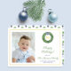 Elegant Boxwood Wreath Monogram Photo Blue Gold