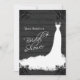Elegant Bridal Gown on Rustic Black Wood Invitation