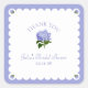 These square thank-you stickers feature a hand-painted blue hydrangea with soft scalloped edges and a lavender-blue border, bringing just the right amount of sweetness to your bridal shower favours. “Thank You” arches above the bloom in a refined serif font, while the customisable text lets you personalise with the bride’s name and date. Use them to seal favour bags, gift boxes, or takeaway treats for a polished finishing touch that still feels relaxed and pretty.