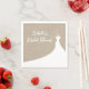 Bright white type and an elegant wedding dress on a rustic burlap background accent this bridal shower napkin, making it perfect for a country, western, beach or boho theme. It coordinates perfectly with the Elegant Bridal Shower Collection in burlap.