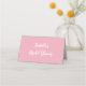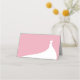 An elegant wedding dress on a pretty pink background accents this folded place card. It is easy to write your guest's name and table number on these cards when you receive them. These cards are part of the Elegant Wedding Collection in pink.