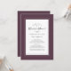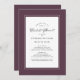 Cassis Purple wedding bridal shower party invitation design features a beautiful chic border in Cassis that includes an elegant petite white border. Calligraphy and script are charcoal grey on a white background. A modern template for date and year compliments the unique calligraphy design. The back of the card is solid Cassis. For best results replace template details with your own details leaving space between paragraphs as in the example and use all capital letters where specified. E-mail invitationsuites@gmail.com with questions or custom requests.