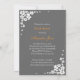 Elegant bride with flowers on dark grey background, white and orange text. Elegant, fully customisable to use as invitation for bridal shower party.