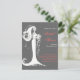 Elegant bride with flowers on dark grey background, white and red text. Elegant, fully customisable to use as invitation for bridal shower party.