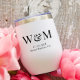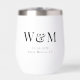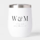Modern thermal wine tumbler to celebrate your wedding with your monogram initials, wedding date and location in elegant classic typography.
