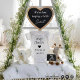 A dreamy and elegant pregnancy announcement featuring a delicate floral ladder a cute heart shaped letter board and a baby body suit with baby name on it and adorable knitted elephant and giraffe plushies perfect foe social media or keepsake print