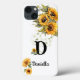 Personalised first name chic summer sunflowers yellow iphone case on white background, is a blend of charm and modern elegance, crafted to resonate with the feminine chic style. You can add your name or another name turning this charming accessory into a unique statement piece. It's a thoughtful gift for her.