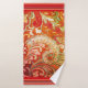 Elegant Brocade Red Orange Yellow Bath Towel Set