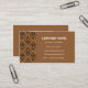 A more formal business card with a pattern of 'fleur-de-lys' in black and chocolate brown on a coffee brown background, with white lettering. Ready for you to customize with your own details.