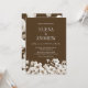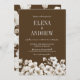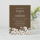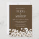 This elegant brown & white floral wedding invitation features fall & winter flowers. Brown background shown with white text and white wedding flowers. Background of bigger white florals is optional. All text, including names, can be changed.