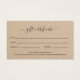 Elegant business card sized gift certificate featuring your name with swashes in a handwritten script along with your title over a brown paper background. The backside has the gift certificate form along with your business contact information. This simple and minimalist design is great for a makeup artist, hair stylist, lashes technician, beauty / nail salon or any woman owned business. PLEASE NOTE: Envelopes are not included.