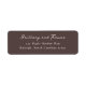 This return address label features a sophisticated and minimalist design with a deep chocolate brown background that exudes elegance. The layout is centred, showcasing two distinct font styles: an elegant script for the names and a clean serif for the address, creating a balanced and formal appearance. The absence of additional motifs keeps the focus on the typographic elements, making it ideal for those seeking a refined and modern look. Perfect for personal correspondence or special occasions, this label conveys a sense of sophistication and simplicity.