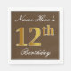 Elegant Brown, Faux Gold 12th Birthday + Name Napkin