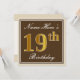 Elegant, Brown, Faux Gold 19th Birthday + Name Invitation