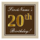 Elegant, Brown, Faux Gold 20th Birthday + Name Poster