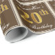 This simple and elegant wrapping paper design features a personalised message like "NameHere’s 20th Birthday" (with the "20th" having a faux/imitation gold-like colouring look) within a brown-coloured square area featuring a simple border outline. The name is in an elegant white-coloured script-like text, and can be personalised. Wrapping paper like this could perhaps be used when wrapping birthday gifts for somebody who is celebrating their twentieth birthday. [~Z0000223]