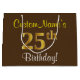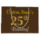 Elegant, Brown, Faux Gold 25th Birthday + Name Large Gift Bag