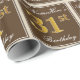 This simple and elegant wrapping paper design features a personalised message like "ANameHere’s 31st Birthday" (with the "31st" having a faux/imitation gold-like colouring look) within a brown-coloured square area featuring a simple border outline. The name is in an elegant white-coloured script-like text, and can be personalised. Wrapping paper like this could perhaps be used when wrapping birthday gifts for somebody who is celebrating their thirty first birthday. [~Z0000223]