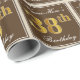This simple and elegant wrapping paper design features a personalised message like "Name-Here’s 38th Birthday" (with the "38th" having a faux/imitation gold-like colouring look) within a brown-coloured square area featuring a simple border outline. The name is in an elegant white-coloured script-like text, and can be customised. Wrapping paper like this could perhaps be used when wrapping birthday gifts for somebody who is celebrating their thirty eighth birthday. [~Z0000223]