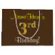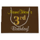 Elegant, Brown, Faux Gold 3rd Birthday + Name Large Gift Bag