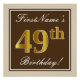 Elegant, Brown, Faux Gold 49th Birthday + Name Poster