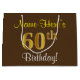 Elegant, Brown, Faux Gold 60th Birthday + Name Large Gift Bag