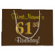 Elegant, Brown, Faux Gold 61st Birthday + Name Large Gift Bag